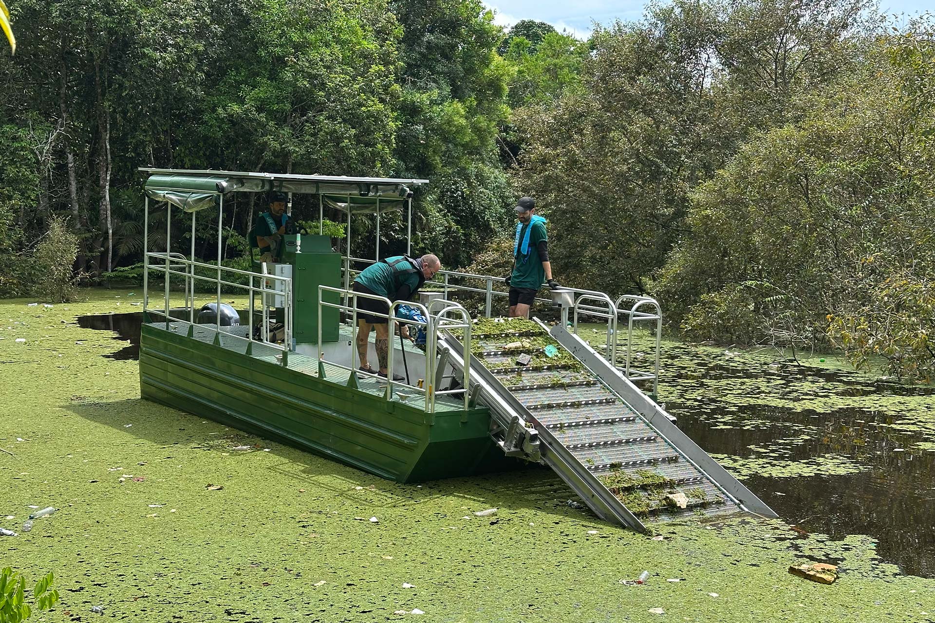 Apresentado em 2025, o Mapinguari II é equipado com um avançado sistema de esteira transportadora, projetado para maximizar a eficiência operacional das coletas. O modelo traz melhorias significativas, incluindo reforços nos protocolos de segurança e uma solução de energia solar de 5 kW, destacando-se como uma plataforma moderna e sustentável no enfrentamento da poluição de rios urbanos.